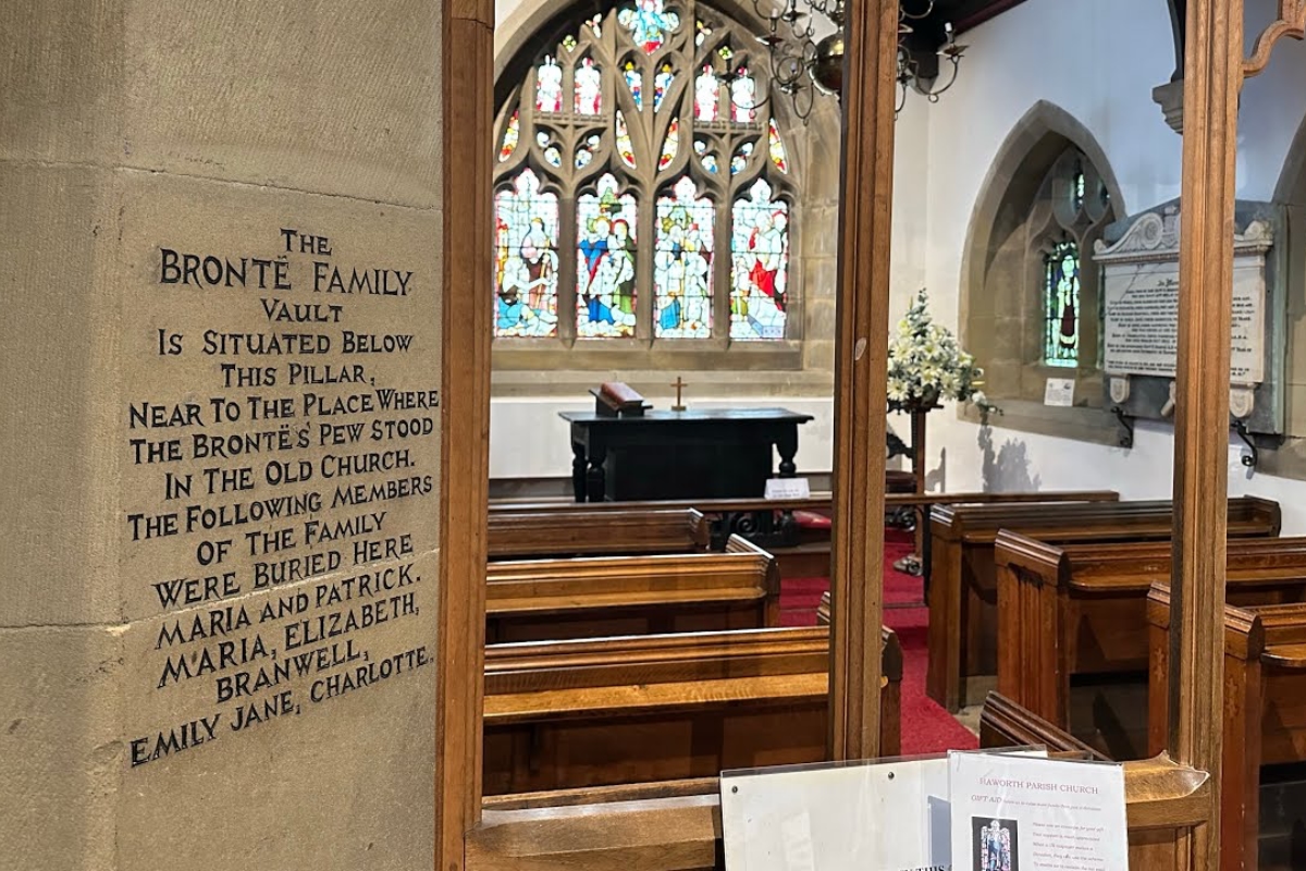 St Michael and All Angels’ Church is the parish church in Haworth, Yorkshire. The church was rebuilt in 1879 as the previous one was deemed unsafe and unsanitary due to contamination from the nearby cemetery. Patrick Bronte brought his family to live in the parsonage in 1820 and was the perpetual curate for 41 years. Patrick outlived his entire family and they are all interred in the family tomb with the exception of Anne. The Bronte Memorial Chapel was built in 1963 and is positioned near where the family pew was situated.